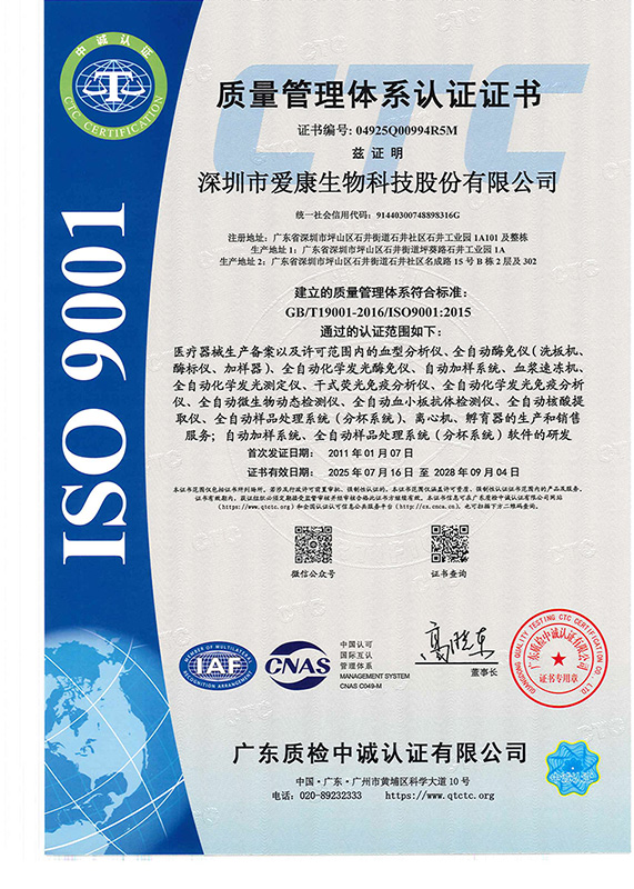 深圳市愛康生物科技股份有限公司成立于2003年,是一家專業(yè)從事醫(yī)療設(shè)備及體外診斷試劑產(chǎn)品研發(fā),集生產(chǎn)、銷售和售后服務(wù)于一體的國家高新技術(shù)企業(yè)。愛康生物擁有酶免、血型、化學(xué)發(fā)光、POCT四大平臺產(chǎn)品,致力于為醫(yī)院、血站等臨床檢驗機構(gòu)提供優(yōu)質(zhì)的產(chǎn)品及專業(yè)的服務(wù)。