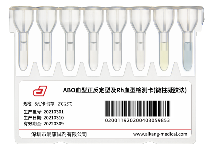 采用微柱凝膠法,8孔卡設(shè)計(jì),用于ABO血型正反定型及RhD血型抗原的檢測(cè)